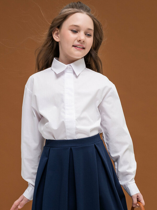 Школьная блузка прямого силуэта для девочки. Преобладающий в составе ткани хлопок делает эту модель мягкой, воздухопроницаемой и комфортной для ребёнка. Полиэстер помогает не терять форму и превосходный внешний вид. На спинке кокетка с защипом — свобода движения, комфорт в течение всего дня. Классическая центральная застёжка на пуговицы скрыта планкой — это придаёт блузке элегантной строгости. Изделие лаконичного дизайна легко сочетать с различными брюками, юбками и джинсами. Красивая и практичная блузка — подходит как для повседневной носки в школу, так и для более торжественных случаев.