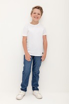 Прямые джинсы для мальчиков выполнены из плотного денима, состоящего из хлопка и 18% полиэстера. Такая ткань обеспечивает прочность и долговечность изделия, а также сохраняет форму после стирок. Модель имеет классический прямой крой, удобные карманы и застежку на молнию и пуговицу. Джинсы подходят для повседневной носки, школы и активного отдыха.