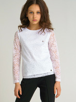 Лонгслив для девочки из хлопка с эластаном — с принтом и стразами
