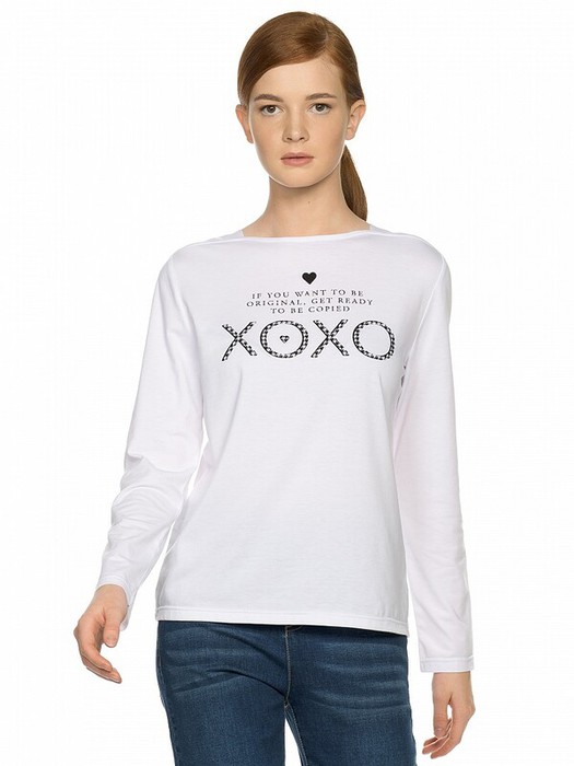 Джемпер женский из мягкого тонкого трикотажа прямого кроя с почти квадратной формой горловины за счет подкройных плечей. Втачной рукав. Стойкий эластичный glossy rubber принт. Перевод  Если хочешь быть оригиналом   будь готов к тому, что тебя захотят копировать.