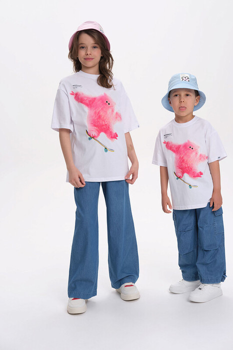 Детская футболка унисекс среднего объема. Прикольная нарядная футболка свободного силуэта со спущенным плечом не будет стеснять движений ребёнка. Вырез горловины отделан эластичной рибаной - голова не застрянет. Главная фишка футболки — яркий милый принт, изображающий персонажа, сгенерированного нейросетью (искусственным интеллектом). Это супермодный тренд! Принт эластичный и стойкий — без проблем переносит многочисленные стирки, не теряя своей яркости. На принте изображён забавный пушистый чудик (монстрик) розового цвета + надписи "движение", "искры радости для меня" и "создано с помощью искусственного интеллекта". Широкая размерная сетка позволяет приобрести такую футболку как малышу в детский садик так и подростку. . Белые футболки подходят для носки летом, осенью и весной (демисезон), а также зимой . Цвет товара на экране вашего устройства может отличаться от цвета изделия вживую.