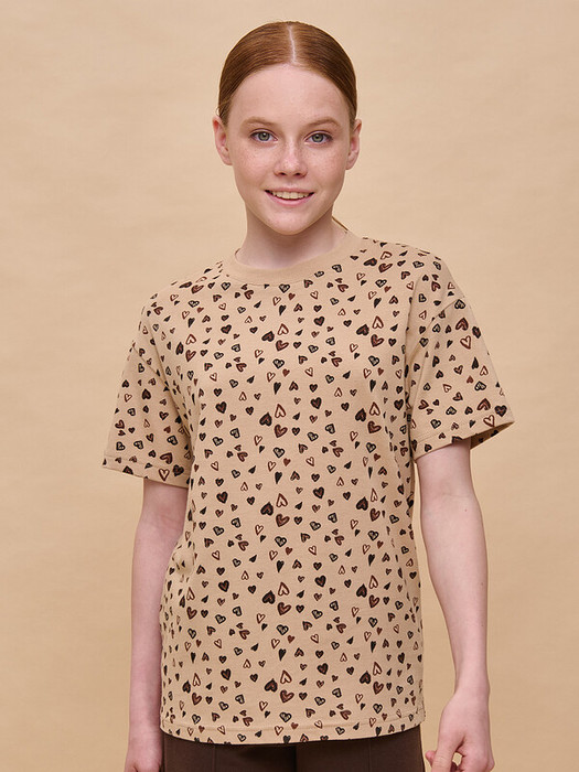 Детская футболка для девочки небольшого объёма прямого кроя с аккуратным рукавчиком. Вырез горловины обработан эластичной рибаной (ткань в рубчик) — она прекрасно держит форму, не растягивается, при этом ребёнку удобно надевать и снимать футболку. Изделие неприхотливо в уходе. Футболка детская с принтом сплошным в виде сердечек. Принт эластичный и прочный, без проблем переносит частые стирки. В составе ткани 100% хлопка — майка мягкая, воздухопроницаемая, приятная на ощупь. Футболка для девочек выполнена в универсальном цвете, который хорошо сочетается с различными брюками, шортами. Детские футболки с принтом подходят как для маленьких девочек, так и для девочек-подростков. Хлопковая футболка идеальна для любого времени года, её можно носить как летом, так и в холодное время года в качестве среднего слоя одежды. Помните о правильном уходе за изделием: рекомендуется стирать при температуре не выше 30 °C, без предварительного замачивания, с изнанки. Это поможет сохранить качество и цвет футболки на длительное время.