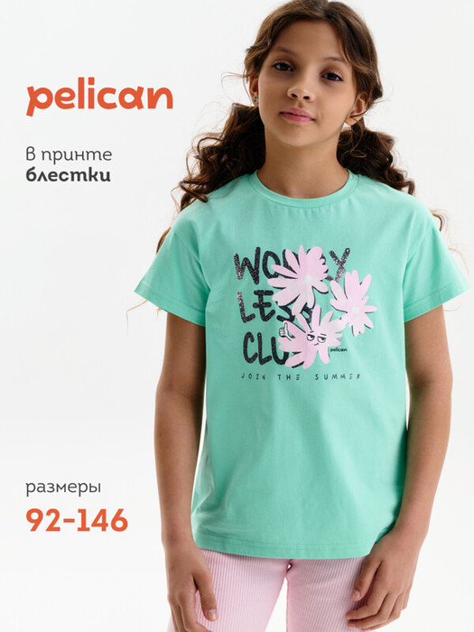 Совместные покупки Магнитогорск Детская одежда Футболки, майки — Pelican Футболка для девочек GFT3389/2 Ментол