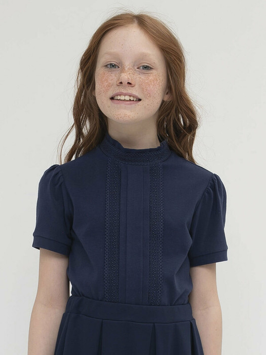Кружево по бокам центральной складки спереди и по воротнику, а также лёгкая сборка рукава вносят немного романтики в классический стиль.