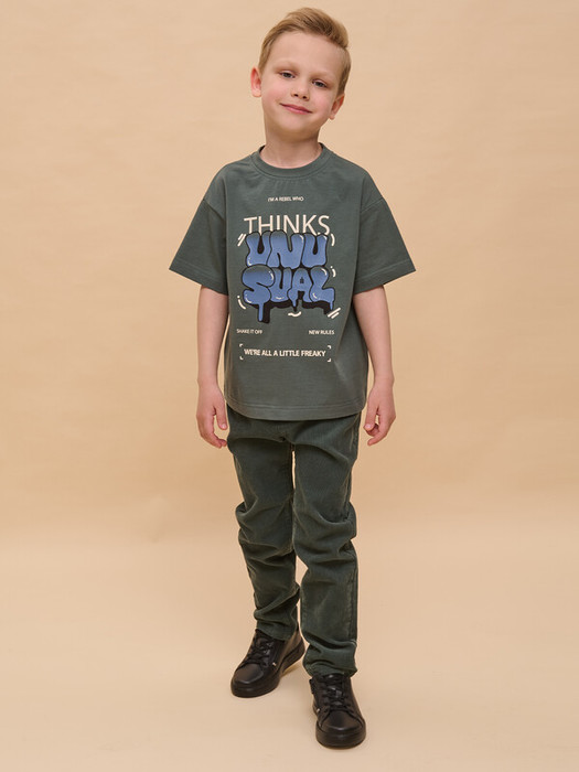 Детская футболка для мальчика. Комфортная майка умеренного оверсайз-объёма со спущенным плечом подарит ребёнку свободу движений. Вырез горловины обработан эластичной рибаной (ткань в рубчик) — она отлично держит форму, не растягивается, при этом ребёнку удобно надевать и снимать футболку. Изделие неприхотливо в уходе. Футболка детская с принтом в актуальном готическом стиле. Надписи переводятся: «я бунтарь, который мыслит необычно», «взбодрись, новые правила», «все мы немного странные». Принт эластичный и устойчивый, хорошо переносит многочисленные стирки. В составе ткани 100% хлопка — майка мягкая, воздухопроницаемая, приятная на ощупь. Футболка для мальчиков выполнена в универсальной расцветке, её легко сочетать с различными брюками, джинсами. Детские футболки с принтом подходят как для маленьких мальчиков, так и для подростков. Оверсайз-футболка для мальчика подходит для любого времени года, её можно носить как летом, так и в холодное время года в качестве среднего слоя одежды. Помните о правильном уходе за изделием: рекомендуется стирать при температуре не выше 30 °C, без предварительного замачивания, с изнанки. Это поможет сохранить качество и цвет футболки на длительное время.
