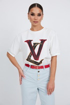 Женская футболка с принтом. Футболка оверсайз со спущенным плечом подарит вам комфорт и свободу движения. Джемпер такого силуэта скрывает недостатки фигуры и подчёркивает достоинства. Майка с удлинёнными широкими рукавами — один из актуальных модных трендов сезона. Она неприхотлива в уходе. Трикотажная футболка украшена трендовым принтом в университетском стиле по переду, надписи переводится: "наслаждайтесь временем, проведённым вместе", "досуг, комфорт", "выходные на объединяют". Принт качественный и стойкий — без проблем переносит многочисленные стирки. В составе ткани преобладает высококачественный хлопок — футболка мягкая, приятная на ощупь и позволяет коже дышать. Эластан помогает изделию надолго сохранить первозданную форму. Джемпер представлен в следующих актуальных цветах: чёрный, голубой, синий, жёлтый, белый, зелёный, бежевый. Размерная линейка: XS (42); S (44); M (46); L (48); XL (50). Модель идеальна и для женщин, и для девушек, и для девочек-подростков. Базовая футболка оверсайз универсальна, отлично подходит для работы, учёбы, спорта, прогулок, отдыха, а также для дома и сна. Хлопковая футболка легко сочетается с различными брюками и шортами. Её можно носить летом, зимой и в демисезон (осенью и весной). Модная футболка— это прекрасный подарок сестре, подруге или маме на любой праздник. Выбирайте нужный размер по таблице размеров на фото. Цвет товара на экране вашего устройства может отличаться от цвета изделия вживую.