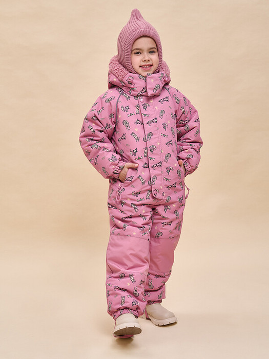 Комбинезон зимний детский из мембранной ткани для девочки. Модель свободного объёма с рукавами кроя реглан - ребёнку комфортно и не стесняет движения. На внешнюю поверхность материала нанесена водоотталкивающая пропитка (DWR), она задерживает грязь и влагу снаружи — ребёнок не промокнет от снега, а комбинезон легко отстирается. Также есть дополнительная пропитка на внутренней стороне ткани — для более надёжной защиты от промокания. Капюшон двухшовный, что обеспечивает анатомически правильную форму и комфортную посадку по голове. Капюшон не отстегивается, предусмотрена регулировка объема эластичными шнурами с пластиковыми стопперами. Внешний край капюшона декорирован мягким искусственным мехом, по текстуре напоминающим «барашка». Из этого же материала выполнена внутренняя подкладка капюшона, она комфортная, тактильно приятная. Удобная центральная застёжка на тракторную молнию. Тканевый стоппер защищает подбородок от зажима молнией. Фиксирующая строчка предохраняет планку от «заедания» в процессе застёгивания. Комбинезон тёплый — для оптимальной защиты от ветра и холода центральная молния дополнительно закрыта ветрозащитной планкой на кнопках и липучках (велькро). Спинка по талии присборена на внутреннюю резинку — комбинезон для девочки зимний безупречно садится по фигуре и не выглядит мешковато. Внутри комбинезона эластичные лямки — есть возможность снимать только верхнюю часть в помещении. Карманы с боковым входом закрываются на водонепроницаемую молнию со скрытыми звеньями — содержимое карманов не промокнет от снега во время активных игр на свежем воздухе. Внутри карманы утеплены мягким флисом. Замок дополнен тканевыми стопперами, что предохраняет его от разрыва. На пуллере эластичный запаянный шнур — ребёнку легко открывать и закрывать даже в варежках. Манжеты рукавов и брючин на комфортных широких резинках, это предохраняет от попадания внутрь снега. На муфтах брюк антискользящая резинка. Комбинезон дополнен съёмными силиконовыми штрипками. Область колен и нижняя часть спинки усилены более плотной тканью — можно смело кататься с горки и ползать на коленках сколько захочется. В каждом изделии нейм-лейбл! Ребёнок не потеряется и не потеряет комбинезон! Световозвращающие канты в проймах переда и спинки — безопасность в тёмное время суток. Модель красивого трендового цвета декорирована милым девичьим принтом. Комбинезон на молнии неприхотлив в уходе — ухаживать согласно указанным на вшивных ярлыках рекомендациям. Изделие выполнено из полиэстера с мембраной — оно не только защищает от холода и влаги, но и хорошо пропускает воздух, давая коже ребёнка дышать. Подкладка из мягкого, тёплого и дышащего флиса (по переду и спинке). В рукавах и штанинах подкладка из тонкого и гладкого полиэстера — благодаря этому ребенку легко надевать комбинезон, руки и ноги не путаются в рукавах и штанинах, а легко проскальзывают. Зимний комбинезон детский идеален для маленьких девочек дошкольного и младшего школьного возраста. Рекомендуемый температурный режим: не ниже минус 25 градусов. В изделии использован один из высокотехнологичных утеплителей — феллекс 260 г/м2. Дышащие свойства мембраны: не менее 3000 г/м2/сут. — ребёнку будет комфортно на прогулке. Модель подходит для носки в детский сад, для прогулок и отдыха н