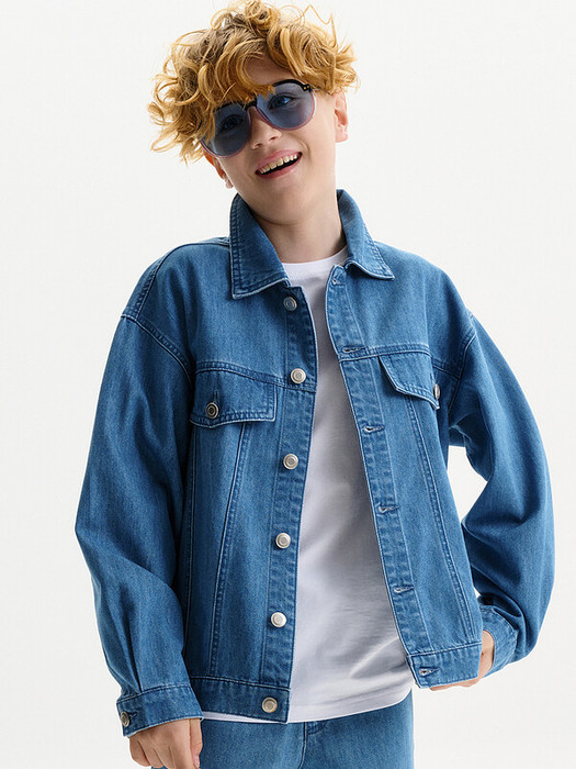 Куртка из плотной джинсовой ткани. Объем куртки позволяет носить ее на худи или свитшот. Силуэт прямой по низу притачной пояс.