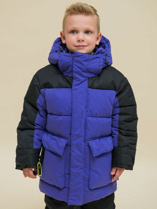Пуховик зимний для мальчика из мембранной ткани. На внешнюю поверхность материала нанесена водоотталкивающая пропитка (DWR), она задерживает грязь и влагу снаружи — ребёнок не промокнет. Также есть дополнительная пропитка на внутренней стороне ткани. Куртка прямого оверсайз-силуэта подходит для любого типа фигуры. Капюшон двухшовный, что обеспечивает анатомически правильную форму и комфортную посадку по голове. Капюшон не отстегивается, предусмотрена регулировка объема эластичными шнурами с пластиковыми стопперами. Внутренние манжеты рукавов из эластичной рибаны (ткань в рубчик) — дополнительная защита от ветра и холода. Рибана хорошо тянется и при этом не теряет форму в течение долгого времени. Дополнительно объем рукава по низу регулируется патой на липе — просто и удобно. Центральная застёжка на тракторную молнию с двумя пуллерами — удобно садиться. Тканевый стоппер защищает подбородок от зажима молнией. Фиксирующая строчка предохраняет планку от «заедания» в процессе застёгивания. Зимний пуховик тёплый — дополнительно, для защиты от ветра и холода, центральная молния закрыта ветрозащитной планкой на липучках (велкро). Куртка выполнена из ткани двух трендовых цветов: черный и фиолетовый. Высокотехнологичные липучки нового образца не цепляются к одежде и не нуждаются в постоянной чистке от ворсинок. По низу объём и силуэт изделия регулируется эластичным шнуром со стопперами. Пуховик на мальчика спереди дополнен объёмными накладными карманами с магнитными застёжками — ребёнку просто и быстро открывать и закрывать даже в варежках. Карманы внутри утеплены мягким флисом. На накладных карманах сделаны прорезные карманы со скрытыми молниями, которые обрамлены водоотталкивающей рамкой — содержимое карманов не намокнет. Пуховик в модном стиле стритвир. Декоративный шнур с кислотными софт-тач акцентами крепится на пуллер с помощью небольшого карабина. Шнур можно перевесить на любой карман или убрать. В каждой куртке нейм-лейбл! Ребёнок не потеряется и не потеряет куртку! На спинке и в боковых швах расположены светоотражающие элементы — безопасность в тёмное время суток. За изделием легко ухаживать. Пуховик без принта. Выполнен из полиэстера (+мембраны) — он тёплый, не промокает, легко стирается, быстро сохнет, сохраняет отличную форму и цвет надолго. Подкладка из мягкого, тёплого и дышащего флиса (по стану, внутреннему воротнику и в капюшоне). В рукавах подкладка из полиэстера — благодаря этому ребенку легко надевать куртку, руки не путаются в рукавах. Куртка выполнена из ткани двух трендовых цветов: чёрный и фиолетовый. Она легко сочетается с различными брюками. Размерная линейка: 3 (98); 4 (104); 5 (110); 6 (116); 7 (122); 8 (128); 9 (134); 10 (140); 11 (146). Куртка зимняя оверсайз подходит для маленьких мальчиков дошкольного и младшего школьного возраста, а также подростков. Рекомендуемый температурный режим: не ниже минус 30 градусов. Утеплитель: экопух. В рукавах дополнительный слой тонкого синтепона. Модель идеальна для носки в детский сад, школу, для прогулок и отдыха. Куртка на мальчика — замечательный подарок для сына или внука на любой праздник.