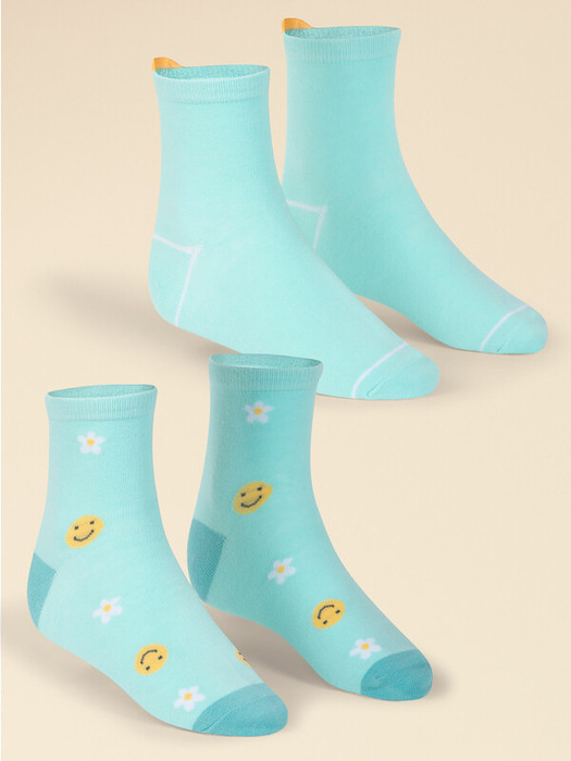 Стильный набор детских носков. В комплект входят 2 пары. Мягкая резинка не пережимает ногу, при этом носки надёжно зафиксированы и не сползают. В составе ткани преобладает хлопок — носки мягкие, отлично пропускают воздух, позволяя коже ребенка дышать. Благодаря полиэстеру и эластану носки износостойкие, хорошо тянутся, прекрасно переносят многочисленные стирки. Милые носки подходят для повседневной носки в школу, детский сад, а также для спортивных тренировок и прогулок. Обе пары в наборе зелёного цвета (трендовый оттенок ментола), одну из них украшает вытканный узор в виде смайликов и цветочков, другую — забавный вытканный смайлик сзади. Он выходит за пределы резинки — актуальный тренд. Модные носки станут интересным дополнением образа. Размерная линейка: 12-14, 14-16, 16-18, 18-20, 20-22. Подходят для круглогодичного применения. Набор носков детских станет отличным подарком для ребёнка на любой праздник. Выбирайте нужный размер по таблице размеров на фото. Цвет товара на экране вашего устройства может отличаться от цвета изделия вживую. Товар возврату и обмену не подлежит.