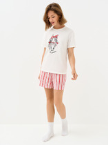 Пижама женская с шортами. В составе ткани преобладает высококачественный хлопок — комплект для сна мягкий, гипоаллергенный и хорошо пропускает воздух. В хлопковой пижаме вам будет комфортно и уютно во время сна. Эластан помогает изделию надолго сохранить первоначальную форму. Майка свободного кроя на широких бретелях дарит комфорт и свободу движений. Шорты свободного кроя, средней длины – для удобства и комфорта. Шортики женские на широкой эластичной резинке – она не давит и не перекручивается. Хлопковая пижама украшена милым, «няшным» принтом в виде забавного зайчика в очках, надписи переводятся: «хорошая атмосфера», «сделай сегодняшний день счастливым» — почувствуйте себя беззаботной девчонкой. Пижамный костюм неприхотлив в уходе. Принт эластичный и мягкий, легко переносит частые стирки. Милая пижама подходит как для сна, так и просто для отдыха дома. Помните о правильном уходе за изделием: рекомендуется стирать при температуре не выше 30 °C, без предварительного замачивания, с изнанки. Это поможет сохранить качество и цвет пижамы на длительное время.