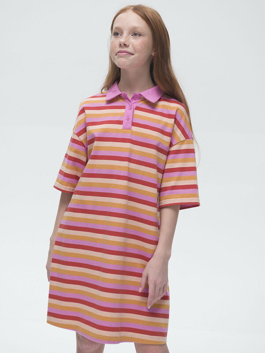 Платье оверсайз-силуэта для девочки. Платье с воротником-поло, прямого кроя и спущенным рукавом идеально подойдёт для создания спортивных и повседневных образов. В составе ткани 100%, поэтому модель комфортная, приятная на ощупь, в ней не будет жарко летом. Ткань проста в уходе. Модный оверсайз-силуэт позволяет носить платье долго. Эта модель идеально сядет на девочку любой фигуры, можно покупать без примерки.