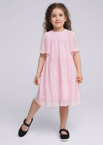Летнее приталенное платье оригинального кроя для девочки. Имитация комплекта из модного кроп-топа с округлым вырезом горловины и юбки на резинке. Верхняя часть изделия и юбка соединены только по переду, поэтому спинка немного открыта. 100% хлопка в составе ткани — модель приятна на ощупь и очень комфортна для жары. Крой юбки — полусолнце, поэтому она не сковывает движений. Платье декорировано нежным цветочным принтом. Отличный выбор для летнего отдыха и прогулок.