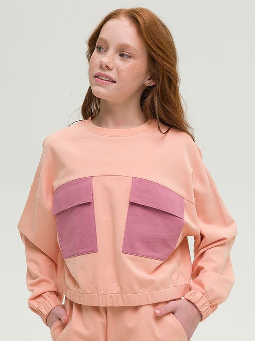 Кроп-топ оверсайз с длинными рукавами из футера для девочки. 100% хлопок в составе – ткань мягкая, дышащая, приятная на ощупь. Спущенное плечо и свободный крой – настоящий трендовый оверсайз. Низ и манжеты собраны на резинку и обработаны основной тканью. Два накладных кармана из курточной ткани с клапанами – стильный декоративный контраст. Кроп-топ подходит для создания стильного образа в паре с джоггерами и футболкой. Идеален на каждый день, для прогулок и активного отдыха.