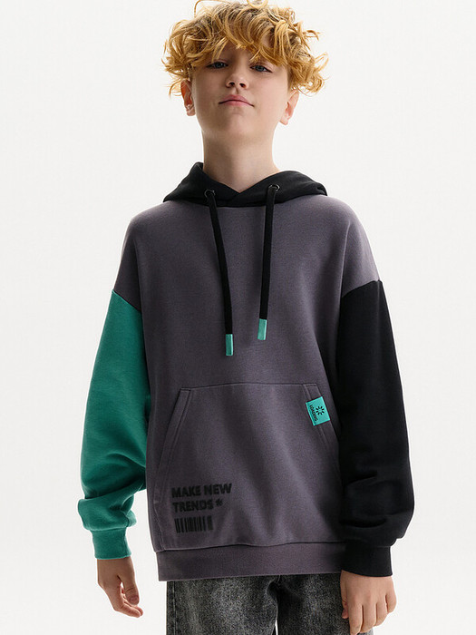 Худи для мальчика без начеса – актуальная вещь в любом сезоне, будь то весна, лето или осень. Кофта спортивная для мальчика выполнена из плотного футера-петля, который отлично согревает в прохладную погоду и при этом хорошо пропускает воздух – ребенок активно двигается, играет, не потеет. Толстовка свободного покроя оверсайз со спущенным плечом, углубленной проймой. Рукава а также низ изделия на манжете из рибаны. Удобный карман кенгуру. Капюшон на запахе со шнурками для регулировки. Изделие выполнено в актуальном стиле Digital и понравится юным геймерам. По переду текстовый принт. Перевод принта "make new trends" - делай новые тренды. Размерный ряд подходит как для малышей так и для подростков.