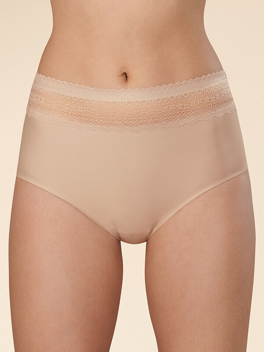 Женские трусы-шорты с высокой посадкой. Изготовлены по бесшовной технологии с минимум швов. Кромки по ноге и по талии подогнуты и приклеены, хлопковая приклеенная ластовица. Нежное геометричное кружево по линии талии высотой 5 см – не передавливает тело и не натирает кожу. Модель оценят те, кто ищет незаметное и невесомое белье на каждый день или особого случая.