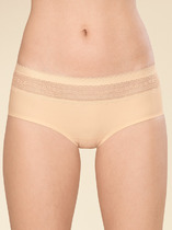 Женские трусы-слипы со средней посадкой. Изготовлены по бесшовной технологии с минимум швов. Кромки по ноге и по талии подогнуты и приклеены, хлопковая приклеенная ластовица.  Нежное цветочное кружево придает модели утонченный вид. Модель оценят те, кто ищет незаметное и невесомое белье на каждый день или особого случая.