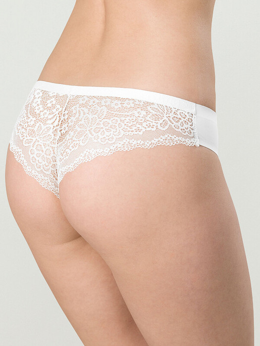 Женские трусы-танга с низкой посадкой. Изготовлены по бесшовной технологии с минимум швов. Кромки по ноге и по талии подогнуты и приклеены, хлопковая приклеенная ластовица. Нежное цветочное кружево придает модели утонченный вид. Модель оценят те, кто ищет незаметное и невесомое белье на каждый день или особого случая.