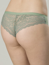 Женские трусы-танга с низкой посадкой. Изготовлены по бесшовной технологии с минимум швов. Кромки по ноге и по талии подогнуты и приклеены, хлопковая приклеенная ластовица. Нежное цветочное кружево придает модели утонченный вид. Модель оценят те, кто ищет незаметное и невесомое белье на каждый день или особого случая.