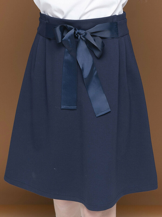 Классическая юбка для девочки в новом стильном исполнении. Дизайнеры позаботились о том, чтобы изделие держало форму и выбрали для пошива А-силуэт и плотное, но мягкое трикотажное полотно благородного синего цвета. Потайная молния сзади придает изделию цельный аккуратный вид. Модель дополнена фигурным поясом с защипами и позволяет играть с конечным образом при помощи втачной репсовой ленты. Одна деталь две вариации: романтичная натура предпочтет изысканный бант спереди, а юная карьеристка лаконичный узел сзади.