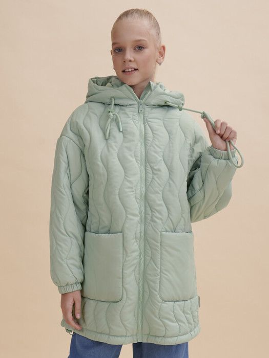 Куртка для девочек  – демисезонная модель прямого силуэта, увеличенного объема с утеплителем из синтепона (200 гр) и хлопковым подкладом. Куртка детская с температурным режимом +5 °C на весну и осень. Водоотталкивающая пропитка или  DWR (Durable Water Repellent) – «устойчивое водоотталкивающее покрытие» - защищает от промокания под дождем: материал не утяжеляется под воздействием влаги, позволяя свободно пропускать воздух. Капюшон двухшовный, что обеспечивает анатомически правильную форму и комфортную посадку по голове. Капюшон не отстегивается, предусмотрена регулировка объема эластичными шнурами с пластиковыми стопперами. Куртка для девочки представлена в размере возраста для садика и школы. Куртка длиной до середины бедра с практичным и ловким кроем, понятной формой и силуэтом. Застегивается на тракторную молнию, с внутренней стороны которой имеется  ветрозащитная планка для дополнительного тепла. Слегка спущенное плечо и углубленная пройма, мягкая линия плеча для удобства в носке. Рукав объемный вверху, понизу собран на широкую резинку. По переду два больших накладных кармана - актуальный тренд сезона. Изюминка модели - стильная фигурная волнообразная стежка. Плетение шнурков созвучно стежке волнами, софт-тач стопперы и брендированная фурнитура делают эту куртку стильной и современной. По низу изделия предусмотрена регулировка объёма на эластичный шнур с пластиковыми фиксаторами. На спинке и в боковых швах расположены светоотражающие элементы — безопасность в тёмное время суток. За изделием легко ухаживать. Изделие представлено в цвете на выбор: розовый, бежевый и светло-зеленый. Единый дизайн name label’s - ребенок не потеряется и легко отыщет свою одежду.  Размерная линейка: 2 (92); 3 (98); 4 (104); 5 (110); 6 (116); 7 (122); 8 (128); 9 (134); 10 (140); 11 (146). Предусмотрена стирка при температуре +30 градусов. Выбирайте нужный размер по таблице размеров на фото. Цвет товара на экране вашего устройства может отличаться от цвета изделия вживую.