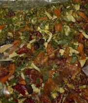 Состав: хмели-сунели (базилик, кориандр, куркума, мята, майоран, пажитник, петрушка, укроп, лавровый лист), кориандр, морская соль, томаты дробленые, мука пшеничная, чеснок, кинза, сахар-песок, петрушка, красный перец, мята, лимонная кислота. В комплекте – пакет для запекания!