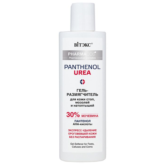 Гель-размягчитель с высокой концентрацией компонентов – эффективное средство для экспресс-процедуры размягчения и удаления ороговевших участков кожи стоп, сухих мозолей и натоптышей без распаривания. Активная формула содержит 30% мочевины (Urea) в сочетании с АНА-кислотами (гликолевой, молочной, лимонной), благодаря чему действует быстро, эффективно и безопасно. Пантенол (Panthenol) интенсивно восстанавливает кожу, устраняет раздражение и шелушение, ускоряет заживление трещин.