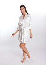 Пижама женская, состотящая из блузы и шорт. Блуза пижамная - из полотна "кулирка" в клетку, свободжного покроя, с короткими цельнокроеными рукавами, V-образной горловиной и центральной бортовой застежкой на обметанные петли и пуговицы. Борта и горловина окантованы основным материалом. Шорты - из полотна "кулирка" в клетку, расклешеные, короткие, с эластичной тесьмой по талии.