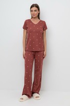 Пижамный набор с цветочным принтом на пуговицах