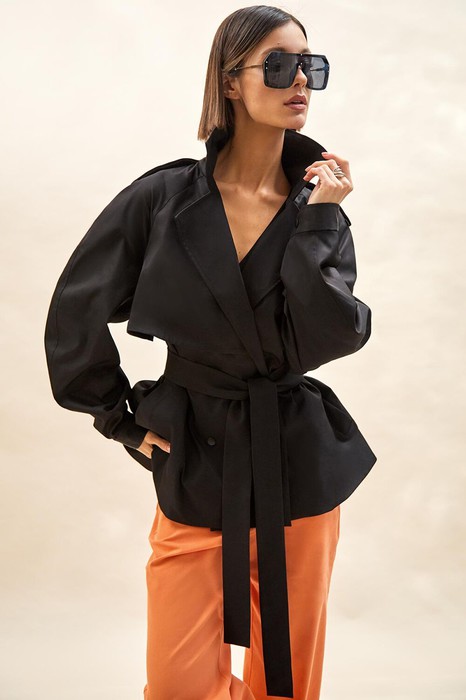 Тренч укороченный из джинса: