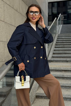 Дизайн с двубортной застёжкой, аккуратными лацканами и декоративными пуговицами подчеркивает классику, а современные детали — кокетки и пряжки на рукавах — добавляют модный акцент. Плащ женский, свободного силуэта, из плащевой ткани, на подкладке, с двубортной застежкой на 2 петли и декоративные пуговицы (размер и цвет фурнитуры может незначительно отличаться от фото), для повседневной носки.