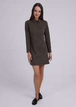 Платье с круглым вырезом, срез горловины обработан окантовкой из основной ткани. Платье отрезное и присборенное по линии талии. Рукав три четверти на приспущенной пройме, что доставят удобства каждой женщине. Низ изделия и низ рукава подогнуты на плоскошовке. Поясок также из основной ткани