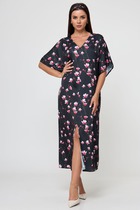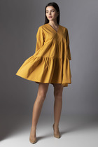 Женственное платье приталенного силуэта из легкой ткани "Ниагара". Округлая горловина на внутренней обтачке. Втачной рукав длинной 3/4 присборен на манжету. Модель отрезная по линии талии, присборена на эластичную резинку. Низ ровный, без разрезов. Линию талии подчеркнет пояс - "кушак".