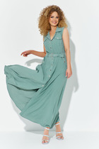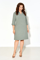 Тёплое женское  платье свободного покроя  может украсить гардероб  многих женщин. Круглый вырез горловины, обработанной бейкой, по центру переда защип на 0,5см и прорезные карманы с листочкой. Спинка платья со средним швом. Декоративное украшение прилагается.