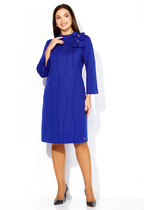 Трикотажное женское платье прямого силуэта, по спинке тесьма -молния.по переду карманы. Рукав со складкой и декоративными пуговицами, на манжете.