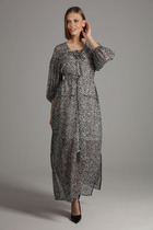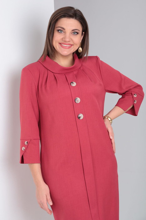 Офисное платье прямого силуэта . По переду платья круглый воротник .ниже складки и планка с декоративными пуговицами.  Втачой рукав с манжетой и также декоративными пуговицами. По спинке тесьма молния.
