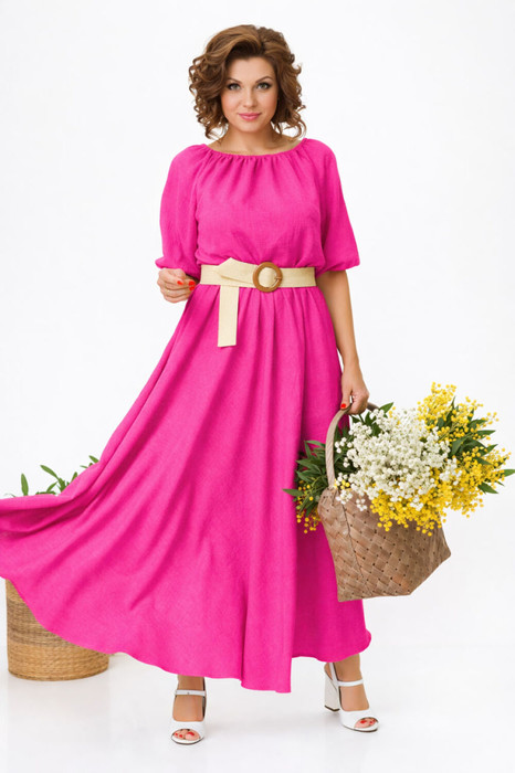Платье макси свободного силуэта - лучший выбор на лета. Рукав реглан 3/4 длины, низ на резинке. Горловина собрана на резинку. Платье отрезное по линии талии, на резинке. Юбка полусолнце. В  комплект входит съемный пояс. ВНИМАНИЕ! Пояс может отличаться от фото.  Длина юбки: 93см . Длина рукава: 43см. Длина спинки: 42см.