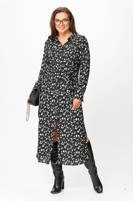 Платье рубашка от бренда «Анастасия» - создано для тех, кто ценит комфорт и элегантность.  Платье оригинального кроя из блузочной ткани. Полочка ассиметричная: с одной стороны идет драпировка, переходящая в пояс, со второй стороны: пояс-завязка из бокового шва.  Застежка -планка на петли и пуговицы. По бокам разрезы. Платье миди дополнено отложным воротником и длинными рукавами на манжете. Платье с пуговицами спереди подходит практически всем. Нарядное платье идеально для повседневной носки и стиля casual кэжуал. Повседневное платье рубашка - необычный вариант на каждый день, для прогулок, встреч в кафе и даже для работы, если позволяет дресс-код. Наряд надевают не только на повседневку, но и на фотосессию, на праздничные мероприятия – день рождения, новый год, новогодняя вечеринка. Модное платье с длинными рукавами можно комбинировать с разной обувью и одеждой для создания молодежных образов. Стильное платье идеально подойдет для повседневных выходов, особенно когда нужно добавить шарма и изящности в ваш образ. Оно также станет отличным выбором для особых случаев, таких как свадьба подруги, новогодний вечер или другие праздничные мероприятия. Универсальная длина миди и классический фасон рубашки делают его отличным выбором как для повседневного, так и для делового образа. Идеальное сочетание стиля и удобства для тех, кто ценит изысканность в каждой детали. Нам важно ваше мнение  отзывы.. Длина по спинке (48-52)-127см, (54-58)-129см. Длина рукова с манжетой: (48-58)-65см.
