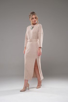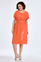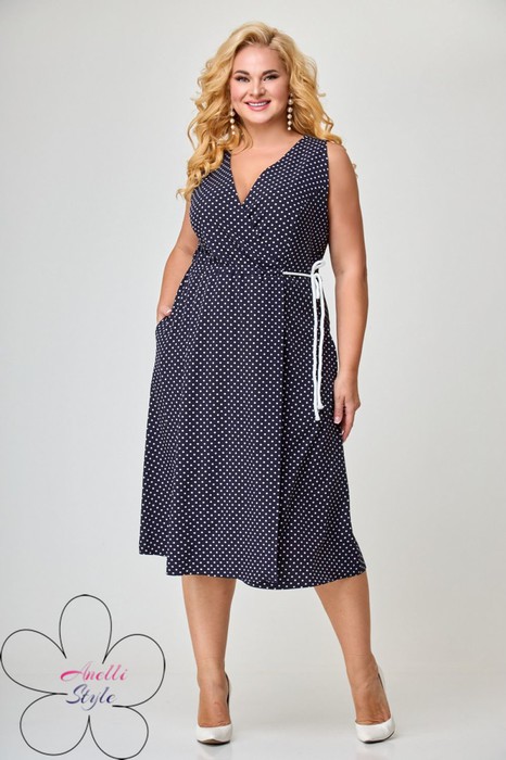 Платье на запах, длина ниже колен. Пройма и горловина обработаны обтачками. По линии талии кулиска, в которую протянут шнурок, для фиксации платья. Так же для этого можно использовать узкий пояс.
