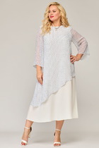 Верхнее платье выполнено из легкой ткани, полу прозрачного шифона, нижнее платье более плотное трикотажное полу прозрачное полотно. В сочетании двух платьев прозрачности нет, заметен лишь легкий силуэт фигуры.