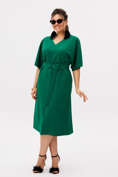 Это платье в цвете «крыжовник» — образец сдержанной элегантности и безупречного вкуса. Его прямой силуэт мягко следует линиям фигуры, создавая лаконичный и при этом выразительный силуэт. Рукав в стиле кимоно добавляет образу легкость и динамику, делая каждое движение плавным и изящным.