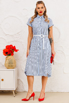 Лаконичное женское платье выручит свою обладательницу в любой ситуации. Благодаря своей универсальности платье отлично подойдет для любого мероприятия или повода: на деловой или дружеской встрече, в офисе или кафе. Платье полуприлегающего силуэта, расклешенное книзу. Воротник рубашечного типа на притачной стойке. Платье отрезное по линии талии, со шлевками для пояса. Полочка с центральной застежкой на притачных планках на контрастные кнопки, нагрудными вытачками и накладными карманами со складкой и клапаном. В боковых швах юбки планки с застежкой на контрастные кнопки и разрезы. Рукав втачной длинный, понизу с притачной манжетой с застежкой на кнопку. В комплекте к платью прилагается съемный пояс.