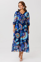 Платье полуприлегающего силуэта выполнено из полупрозрачной трикотажной ткани нежно-мятного цвета . Характеристики: короткая подкладка, открытые плечи , верх изделия на резинке, по верху изделия волан переходищий на спинку, по передней части изделия декоративная деталь выполнена из ткани основного изделия, рукав втачной. Длина по спинке 124 см, длина рукава 62 см.