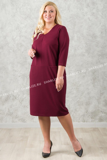 Это офисное платье с чуть заниженной талией аккуратно формирует силуэт. Модель можно сочетать с разными украшениями. Несмотря на то, что оттенок бордовой розы придает платью нотку строгости, изящные аксессуары смогут превратить его в более утонченный наряд, который можно надеть на корпоратив, праздничное мероприятие или ужин в кругу друзей. Трикотажная модель хорошо комбинируется с классическими туфлями или ботильонами.