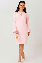 Платье женское из тонкого трикотажного полотна с неоднородной поверхностью. Изделие на подкладке из тонкого трикотажного полотна, до колена. Платье слегка прилегающего силуэта удлинённое с длинным втачным рукавом, вырез горловины полукруглый с узкой планкой.
