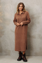 Платье укомплектовано поясом-завязкой из основной ткани с декоративной металлизированной бахромой на концах.