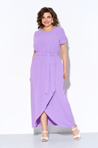 Платье женское свободного силуэта расширенное к низу выполнено из шифона. Перед и спинка с отрезной кокеткой, нижняя часть выполнена из двух деталей внахлёст со складками по верхнему срезу. На спинке "капелька " и застёжка на навесную петлю и пуговицу. Рукава втачные одношовные длиной 3/4 со сборкой на резинку по низу. Круглый вырез горловины окантован. Платье на атласной подкладке от кокетки.