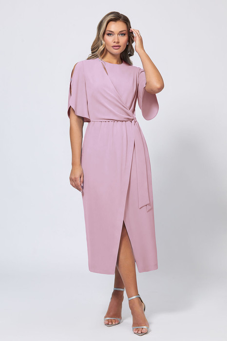 Красивое платье с имитацией запаха идеально подойдёт для создания стильного, нарядного образа. Для пошива модели использовали материал на основе мягкой и приятной к телу вискозы с полиэстером.Рукава-воланы с красиво мерцающей стразиной и мягкие драпировки делают силуэт изделия очень лёгким и воздушным , а каплевидный вырез с пуговицей-стразиной и фигурный разрез по низу придают образу женственности и сексуальный штрих. Талия изделия акцентирована скрытой резинкой.