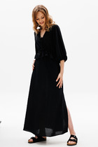 Плечевой шов изделия предусматривает декоративные разрезы вдоль линии плеча.