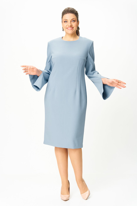 Элегантное женское платье, прилегающего силуэта: по переду и спинке вытачки по талии. Горловина круглая. Застежка на молнию в центральном шве спинки. Рукава втачные, двухшовные, расширенные к низу, в переднем шве, по низу, разрез. Платье без подкладки